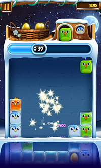提示:此游戏开始为体验模式,然后支持移动卡支付激活正版。如果您遇到了游戏体验与支付问题,请及时与我们联系。感谢您对乐逗游戏的支持!《小鸡爆破Birzzle》是一款来自韩国的消除类游戏,超可爱的画面风格博得了无数女玩家的青睐,同时简单的玩法也适合男女老少,如果问笔者这款游戏让众多玩家为之上瘾的地方在哪?我想首先就是简单易学的触控方法,其次三只小鸟爆破的快感以及四只小鸟所形成的“Powerbird”可以造成大规模的杀伤力,最后随着游戏时间的推移,高速小鸟堆积让你绑紧每一根神经,让你享受在拼命的连续爆破的快感之中。《小鸟爆破》在AppStore上线后排名一直居高不下,同时获得2011年韩国手机应用大奖赛大奖,排名热门游戏前十!这是一款可爱的休闲小游戏,游戏画面精致,三个相同颜色的小鸟凑在一起就可以消除。这款游戏的本质还是类似钻石迷情的“三消”,不过和以往的“三消”游戏有所区别的是,我们不仅仅是只能调换两个相邻的元素,在这款游戏我们可以把这些小鸟随意挪动位置,只要它的身边有空间可以让它挪出来即可,整个游戏的画面非常的清新。