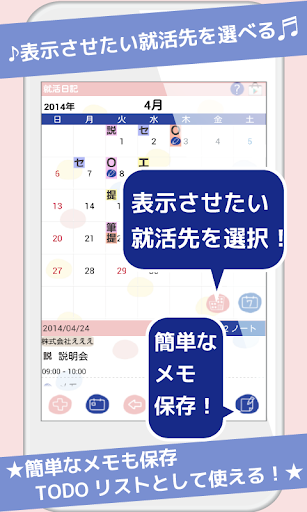 就活先設定で簡単に会社別イベントを登録、出来事などの