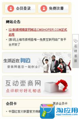 访问崇明本地网您可以很快找到崇明三岛周边的生活设施及各类地图地址等各类联系信息,让您足不出户叫到外卖、买到商品、找到工作、联络商户。2013,CMshoper.com将让崇明改变不止一丁点!
