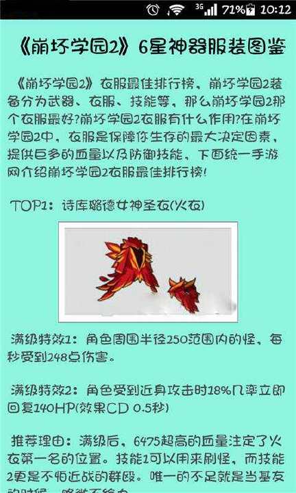 崩坏学园2是一款非常值得一试的网络游戏,在游戏中各种角色穿越来袭,各种混搭大乱斗等你来挑战,缤纷校园,精彩决斗,各种英雄统统粉墨登场,上演终极PK。还有数百关卡,数百装备,数百服饰与角色搭配,是一款非常不错的游戏哦!但是游戏虽好,但是玩不转就会很不爽,没关系,本应用详细图文介绍各种崩坏中的武器装备衣服排行,刷钱刷钻石教程,通关攻略,掉落神器的关卡介绍,各种技巧等等,助你轻松玩转崩坏,和妹子一起战斗!