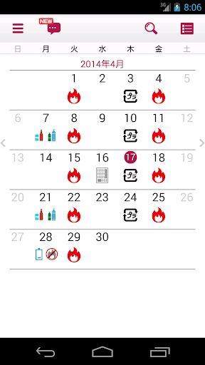 週ごと、月ごとのごみの収集日を一目で確認することができます。