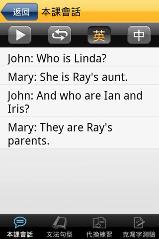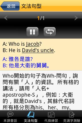 由會話中選錄實用句型,由專業老師解說文法與句型用法,搭配互動式練習與測驗(代換練習與克漏字測驗),讓您精熟重點文法與句型。