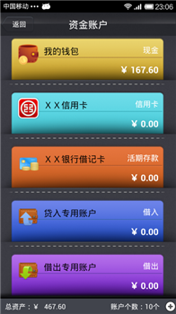 软件也非常个性化,里面的银行图标,收支类型图标,可以由您个人的喜好,自由替换!
