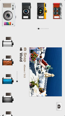 软件功能强大,使用方式也很独特。它提供了多种相机类型的选择(例如鱼眼,宽景,四格连拍等),以及不同底片滤镜效果,并有实际范例图供您先行了解效果。所以你不用再去了解一些照片效果的专业术语,只需对相机的外观和胶卷的类型有所了解,甚至对比范例什么都不知道,也能拍出自己喜欢的效果。