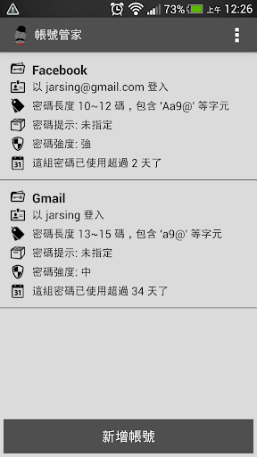 身為國產的帳號密碼管理工具,「帳號管家」採取創新的輔助記憶作法,將帳號密碼的重要特徵以部分揭露的方式記錄在現代人幾乎不離身的手機上,讓喜愛利用紀念日和有意義事件當作密碼的念舊人士,能夠在簡潔的App操作介面中,管理所有的帳號密碼組合。