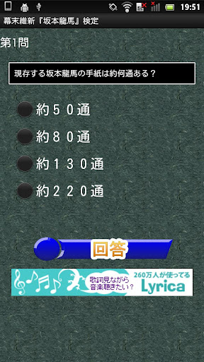 幕末/明治維新の立役者・坂本龍馬のクイズアプリです。