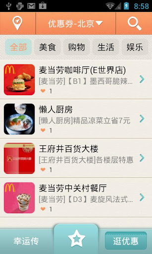 幸运街是全新设计开发的生活优惠娱乐App ,集成了生活优惠、位置服务、游戏互动三大给力功能,是你居家、旅行、打发时间、认识朋友、增进友谊、享受折扣优惠的最佳伴侣!