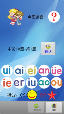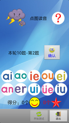 2、为了鼓励幼儿学习,特增加了学习成绩的显示和记录,具体规则如下:答对1题得一个笑脸,一轮全对得一个红星。