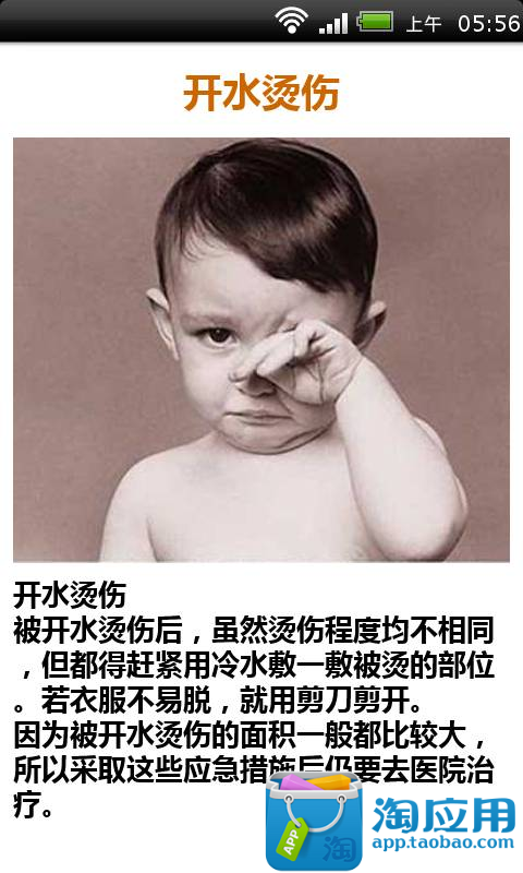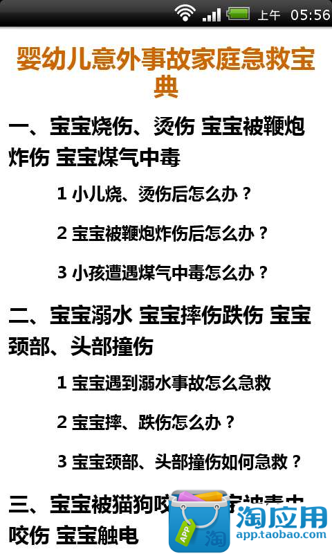 宝宝对周围环境缺乏足够认识,控制自己行为能力差,加上动作协调差,所以意外是很容易发生的。那么发生意外后,就要求家长必须在现场作出应急处理,有些时候,应急处理也是救命的措施。由于意外的发生是不可预见的,孩子病情的发展也比想象的危险多,所以,掌握一些家庭急救的基本方法是非常有必要的。