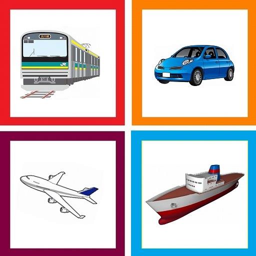 このアプリでは、でんしゃ・ひこうき・くるま・ふね、となります。