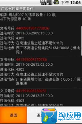 广东省汽车违章的查询,实现广东省全省车辆的违章查询,同时将查询结果详细的显示出来,方便快捷的为有车一族服务。