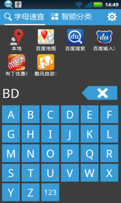 1. 字母简拼查找。简单的敲一两个字母就能找到你想启动的应用.比如“铃声多多”,输入LS, SD, DD,均可快速定位。