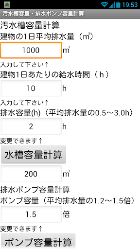 汚水槽の容量及び排水ポンプの容量を計算するアプリです。