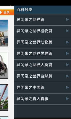 社会有很多的传闻,关于人类的,关于自然的,关于动物的,这些都是人类最爱看到的。那么,你愿意看到这样的百科吗?在哪儿有什么奇怪的鬼屋,或者是哪种植物发生了变异,或者是动物有奇特的表现呢?