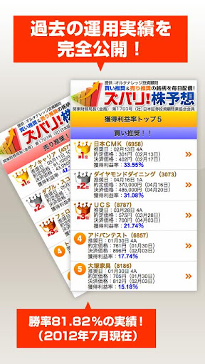 ズバリ株予想【実戦版】は投資顧問会社オルタナレッジが提供する株予想の実戦アプリです。