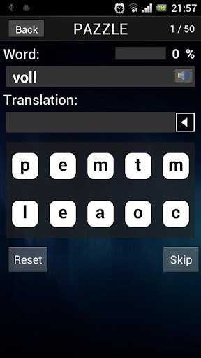 記憶德語單詞學習德語是最難的部分。這項計劃將幫助你記憶單詞。非常舒適和有趣的記憶單詞解開的謎。在這種情況下,系統會要求您轉移從分散的字母,恢復原來的字。學習德語的樂趣!