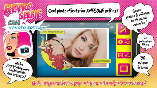 採取selfie用您的相機應用程序,並使其看起來老地道與我們的復古照片效果和相框!下載 ❖ 復古 相機 : 圖片 編輯 ❖ 享受無限制的免費照片編輯,隨時隨地!包圍著您的記憶,並添加寒酸別緻,或復古的風格與這個美麗的圖像邊界集合!打開照片的狂熱,和樂趣使用這個真棒的圖片編輯器!