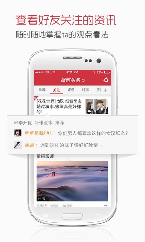 - 最热头条:亿万微博用户亲自给你筛选的社会热点,无需你再去搜索新闻