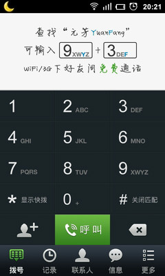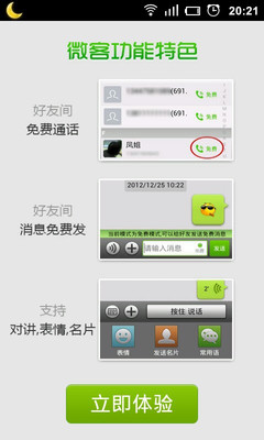 微客免费电话V1.0.0,是一款真正免费打电话、发短信的android语音通讯工具,手机联网就能打电话,不扣任何手机费,春节拜年必备!