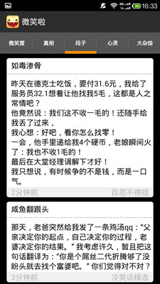 微笑啦——全国涵盖范围最广的爆笑创意提供社区。这里汇聚了笑料百出的爆笑图片,内涵幽默的色系漫画,内涵段子,糗事大全等海量娱乐创意。让您情难自禁的和我们一同踏上欢笑的旅程.