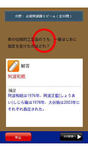 このアプリは、徳島県に関する100のクイズに答えるアプリです。