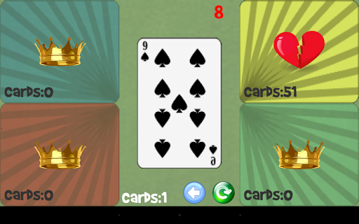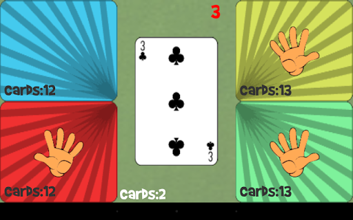 遊戲過程中,當您的方塊中有箭頭時,代表由您來按取中間的樸克牌來發牌,當翻出來的卡與號碼相同時,每位玩家趕緊按下自己的方塊,牌面上所累積的牌由最後一個按下的人自動收回.