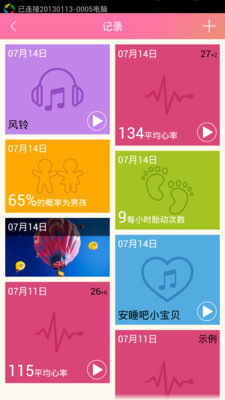 2. 在录制胎音的同时,可以记录宝宝胎动。这些其实都是宝宝用TA独特的“胎语”在与妈妈交流呢。录制的“宝宝胎语”还可以与准爸妈喜爱的音乐混合,制成独一无二的“胎语音乐”。每天倾听这个小小音乐家的歌唱,相信准爸妈们一定会心情大好吧!