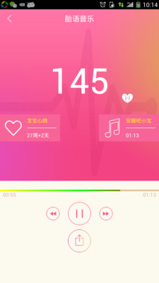 4. 分享快乐。无论是胎音、胎心曲线还是准爸妈精心制作的胎语音乐、催眠曲,都可以随时通过微信、微博以及电邮等方式分享给亲朋好友。与大家一起分享您的快乐,就这么简单。