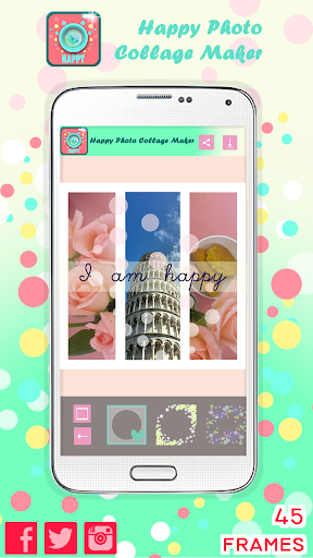 快樂的照片拼貼製作,包括你需要讓你的開心照片看起來更高興的一切。有了快樂的相框和拼貼幀,你不僅可以讓別人高興,但你也可以或許使別人哭泣。但是出來的幸福,當然!臉譜,Instagram的,微博:如果你願意,你可以在你所選擇的社交網絡上分享您的照片拼貼。不要猶豫了一秒鐘,下載最新的快樂拼貼製造商和照片編輯應用程序,並立即享受它!