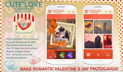 寫你人見人愛的故事,照片書和驚喜你的情人的情人節與情人節可愛的拼貼畫!下載與心臟相框這個浪漫的圖片拼貼製造商,並與最好的圖片編輯器個性化你的愛的圖片!體驗免費圖片編輯,並有樂趣與這真棒拼貼照片應用程序!