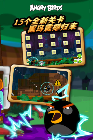 愤怒的小鸟(中文版)是一款风靡全球的物理解谜游戏。游戏中小鸟们为了报复偷走鸟蛋的猪,鸟儿以自己的身体为武器,攻击猪们的堡垒。这次,《 愤怒的小鸟》再出发,我们将迎来全新的“急脾气”篇章,以猪猪实验室为背景,新增45个丰富好玩的新关卡,在全新的关卡中将会有黑鸟和粉色小鸟登场,他们拥有与众不同的超能力;黑鸟拥有强大的地磁波力量,能够制造出强大的电场,然后释放威力无比的冲击波!可爱的粉色小鸟(粉黛)触碰到障碍物或是主动点击,会变成气球飞向上空,乐趣无穷。同时捣蛋猪变身为科学家,关卡中也加入了三种刺激好玩的疯狂药水,让游戏变得更加有趣。快快加入我们吧