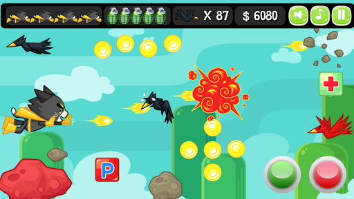 您可以控制英雄/湯姆貓的動作,也拍攝子彈和炸彈。