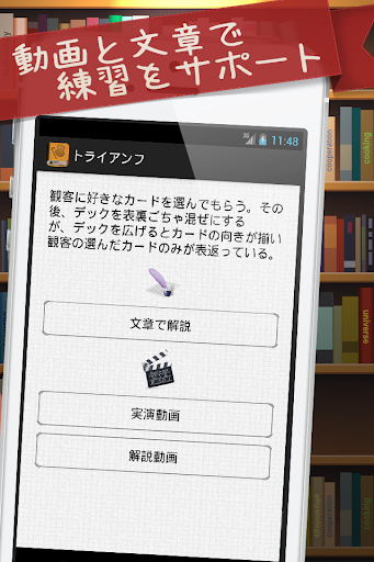 解说动画 这个应用软件全部的魔术附有当场表演动画和解说动画。当场表演演明白ru时候的说法和要领。再解说动画谨慎认真地用动画解说着种。给又不易懂的技术也加上了动画。为此向(到)初学者非常也亲切。