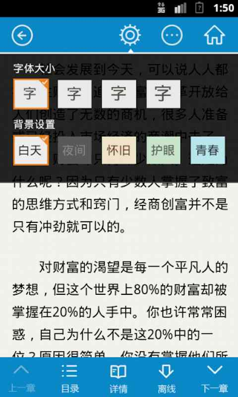 本应用精选了很多成功人士的经验故事案例与大家分享,以供借鉴。这些经验故事案例覆盖了多个方面和层次,归为28类,分上下两篇,上篇以成功者的经历来讲述追求财富必备的一些主要素质和必知的方式方法;下篇则分别讲述各类商业发达的地方人群致富的故事。
