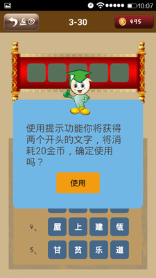 成语猜诗词免费应用只是为了提高大家对古诗词的爱好,和对经典诗词的熟练度而开发的一款趣味应用。作者本人是一位诗词爱好者,特别喜爱河北卫视推出的文化类大型季播节目《中华好诗词》之后,有感而出,从网上搜集了众多经典古诗和整理了大量的成语而开发出本应用以便大家学习。