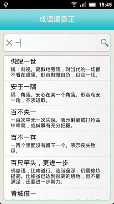 成语速查王提供了快速查询成语词汇的功能。强大的在线词库,提供成语的典故、出处和示例,是您学习成语的必备帮手。