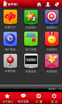 “我中啦彩票”Android客户端,是一款专业手机购彩软件,彩种支持全部福彩、体彩及高频彩等热门彩种。客户端支持24小时随时随地购买彩票,不受时间地点限制;我中啦彩票客户端充值便利,支持银联卡、信用卡、支付宝、中国移动、中国联通手机充值卡等多种充值方式;兑奖便捷、提款及时,随时可以提现至个人支付宝或银联卡账户内。我中啦彩票拥有全国各省所有彩种实时开奖号码查询;