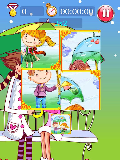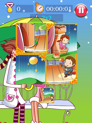 遊戲還有簡單和困難兩種模式,簡單模式可以自由的拼圖,困難模式則需要按照固定好的格子進行拼圖,每關從2x2,也就是4塊兒圖,逐漸升級難度到9x9,全家一起努力打通關吧!