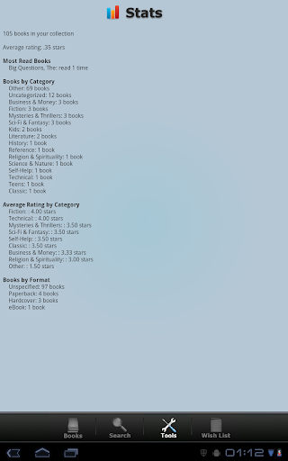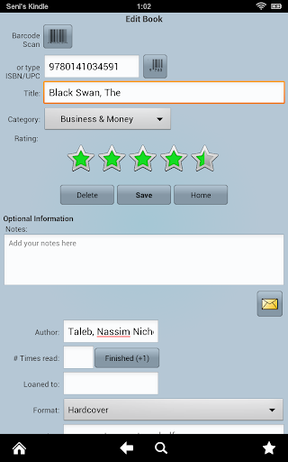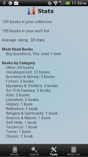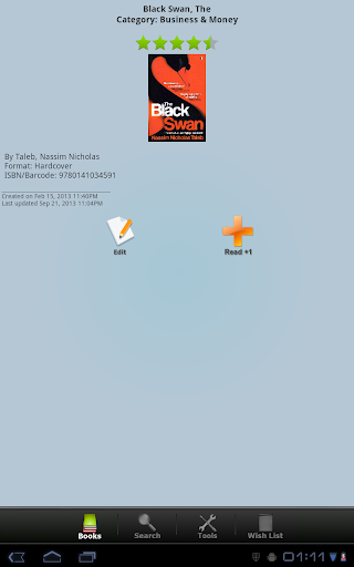 [前稱為圖書收藏+庫]你是一個貪婪的閱讀器?你有麻煩保持跟踪您所有的書嗎?管理您的圖書目錄與此應用程序。跟踪您的藏書連同個人收視率,並注意到,您可以與他人分享或保密的。檢查看看你已經擁有了一本書在您的手機,而你出去逛街。特點•使用大容量條碼掃描選項,輸入您的書籍通過快速掃描條形碼的封面上用手機的攝像頭。 •請記住你的書要購買使用購物清單。 •您的圖書信息導出為 CSV格式的電子表格,打開您的計算機上。 •拍攝照片的書的封面與手機一起去你的書評價和說明。 •備份您的圖書目錄數據到服務器。如果丟失手機或升級到新手機,只需輸入您的集合到新的電話,讓您不必重新輸入所有。 •跟踪統計您的圖書總數的書籍如履帶,平均等級,最經常閱讀,數字圖書跟踪類型。