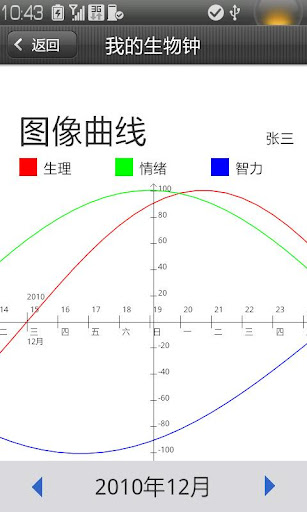 2、本软件依据时间生物学原理,可以自动计算并显示出用户本人及其他相关人员的生物节律变化过程,从而为科学安排学习、工作及生活,避免差错及事故的发生提供参考。