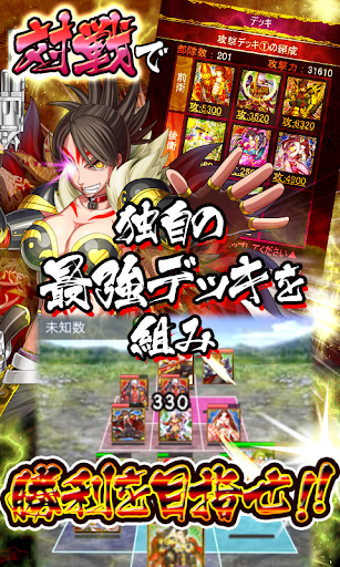 相手の戦国武将をなぎ倒し、武将カードをGET!戦国最強布陣で攻略を目指せ!