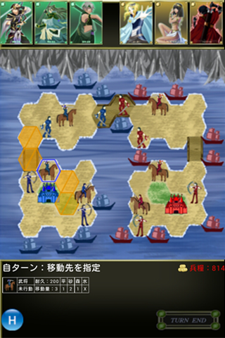 このゲームは初めに自分が属する勢力を決め、それから出陣させたい武将3人を選択し、いざ戦地で敵と戦闘を繰り広げるというゲームです。