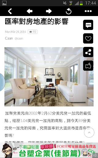 (世界日報) 想靠投資房地產致富嗎?投資房地產需要一筆可觀的金錢,對於產業經濟動態,地理環境等需要有宏觀的知識才能有正確的投資決策。下載這支APP吧!讓經驗豐富的部落客教你如何精打細算精準投資。 不論是法律小常識、房地產市場趨勢、房貸情報、設計裝潢、理財秘訣……等等,都能在APP中找到答案。看看專家分析,做足功課,讓你報酬倍增!