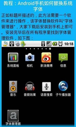 手机是我们每天都要面对的,经常需要打开,手机屏幕是和我们最直观的交互界面,每天看着同样的手机界面,难免会有些视觉疲劳,怎么样给手机增添点色彩,让我的手机和别人的不一样,看上去更个性更有特点呢?这就需要给手机进行一番美化,美化也是有很多方法的,对于android手机,美化的方式就更多了,我们先来了解一下如何给手机换个字体,是不是看惯了自带的那个方方正正的…...