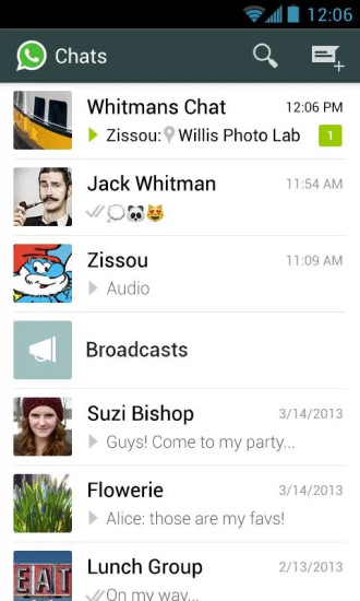 ★ 无国际收费:正如您无需对发送国际电子邮件支付费用一样,您也无需就发送WhatsApp信息支付任何国际费用。只要您的朋友也安装了WhatsApp Messenger,您就可以与全球各地的朋友畅聊天下,并可避免国际手机简讯费用带来的烦恼。★ 对密码和用户名说“不”:为什么要花心思记住一组又一组的密码和用户名呢?正如手机简讯一样,WhatsApp与您的电话号码联用,并和您现有的手机通讯录实现完美融合。但请相信,它绝对可以比手机简讯给你带来更多的乐趣!★ 无需登录/登出:您不再需要为在电脑或其它设备中登出应用程序而感到困惑。WhatsApp可利用推送通知服务,始终保持启用和连接状态。★ 无需添加好友:WhatsApp可直接同步您手机通讯录中的信息,自动连接您的联络人。已经安装了WhatsApp Messenger的联络人将被显示并添加到“喜爱”目录里。★ 离线信息:即使您错过了推送通知或关闭了您的手机,WhatsApp也会保存您在离线时接收到的信息,您在再次登陆本应用程序时便可以查看这些信息。