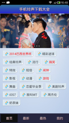 3.手机铃声下载大全支持快速设置手机铃声的来电铃声、短信铃声、闹钟铃声;