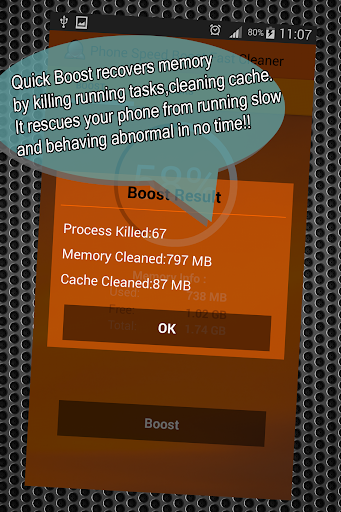 通過方便快捷提振殺死正在運行的任務,清理緩存和系統垃圾回收內存。它救您的手機運行速度慢,在任何時候表現異常。清理你的手機是很容易!