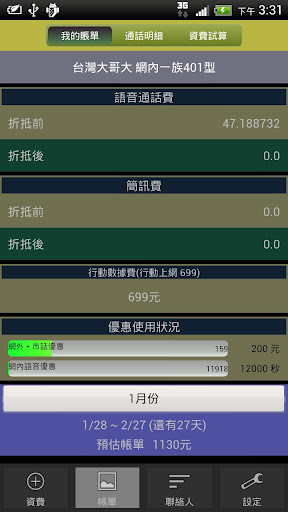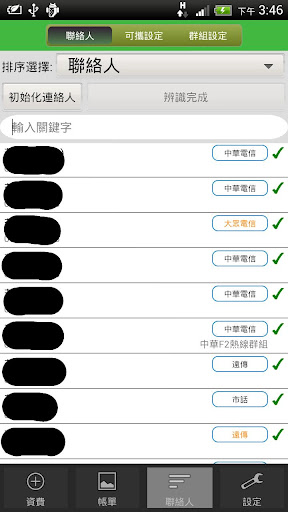表示電信公司是用號碼判斷,紅色表示電信公司無法判別。主要是提醒使用者目前帳單的準確度。