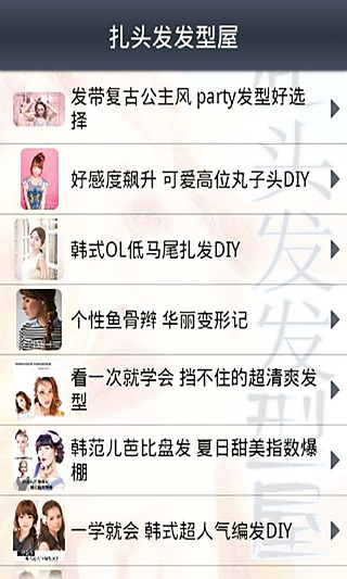 图文并茂详细解说每个扎头发步骤 还在为不知道怎么打理头发烦恼吗?现在不用发愁了!有了扎头发发型屋,每款发型都很漂亮精致,每个步骤都有详细的文字和图片说明,简单易学。 1、扎发技巧模块图像详细介绍扎头发的方法,每个步骤都有文字和图片详细的描述 2、发型与脸型模块讲解发型和脸型的搭配方法。