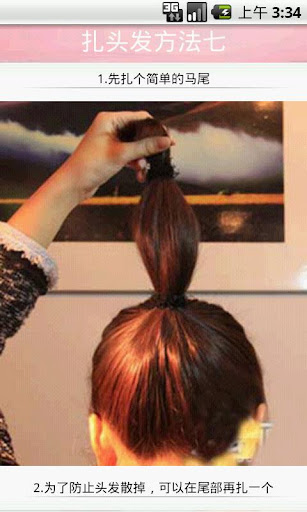 1、扎发技巧模块详细介绍扎头发的方法,每个步骤都有文字和图片详细的描述
